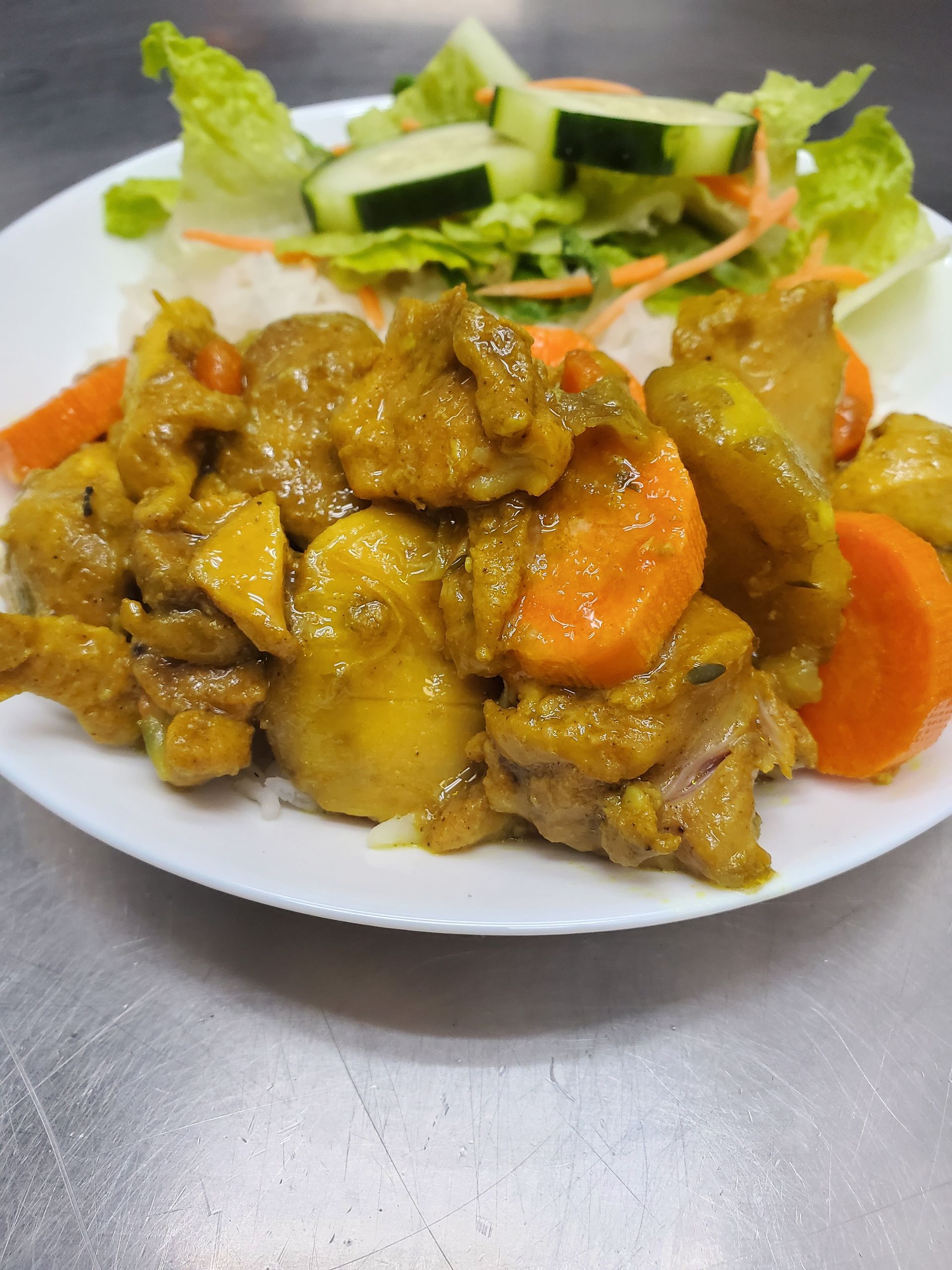 Our specialty curry blend recipe makes the boneless chicken, carrots and potatoes a customer fav.